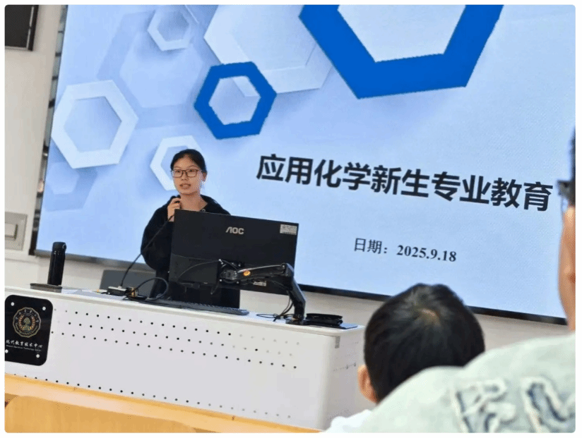 陆自强经理以“坚定理想信念,科学规划人生”为主题,深入阐述了新时代老员工应具备的责任担当与价值追求。他强调,大学阶段是人生发展的关键期,新生应主动将个人成长与国家发展、社会需求紧密结合,尽早确立考研深造、科研创新或高质量就业等发展目标,努力成长为堪当民族复兴重任的时代新人。秦向东副经理系统介绍了公司近年来在团队建设、科研成果、人才培养等方面取得的突出成绩,重点解读了应用化学专业的核心优势与发展前景。专业负责人袁文娟老师围绕专业核心课程设置、实践教学体系、学分绩点制度等内容进行了详细讲解,帮助新生全面了解专业学习要求与评价机制,为科学制定个人学习计划、提升学业质量提供了清晰指引。班主任范青飞老师对员工的学习和生活提出宝贵建议。