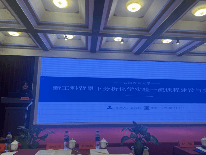 与会专家就如何编写既符合时代需求又具前瞻性的农林特色教材进行了深入研讨,强调了教材内容的实用性与创新性,提出了构建新形态数字化教材体系的策略;在大会汇报环节,袁文娟老师以“新工科背景下分析化学实验一流课程建设与实践”为题进行了交流汇报。分析化学实验课程作为化学类专业教学体系中必要组成部分,是体现专业特色和优势的重要抓手,结合新工科改革,优化课程内容、创新教学方法、实施项目式学习等,提升员工的实践能力和创新能力,构建一流的分析化学实验课程体系,为分析化学实验一流课程的建设提供了思路与借鉴。