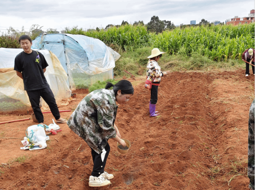 活动开始,在班主任范青飞老师的指导下,员工认真细致地翻耕土地,确保土壤疏松适宜,为后续种植打下良好基础。随后小心翼翼地将一颗颗蔬菜种子植入土中,每一个环节都一丝不苟,充分展现出对劳动的尊重与热忱。此次耕读劳动教育活动特邀植保公司的苏发武老师及其团队成员亲临现场,为同学们讲解土地整理技巧与应季蔬菜种植要点。老师从土壤改良、病虫害防治到蔬菜生长周期管理,全方位、多角度地传授农业知识,同学们围站一旁,全神贯注地聆听,不时提出问题,现场学习氛围浓厚。在老师的专业指导下,同学们不仅学会了如何科学种植蔬菜,更深刻领悟到农业生产的复杂性与专业性,激发起探索农业科学的浓厚兴趣。活动落幕时,同学们虽满身尘土,但脸上洋溢着满足与自豪。他们纷纷表示,通过亲手翻地、种菜,深切体会到"粒粒皆辛苦"的真切含义,往后定将秉持劳动精神,深耕专业学习,以知农爱农情怀,投身强国复兴伟业。