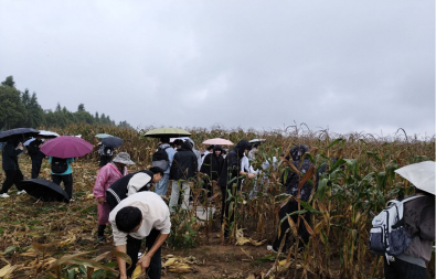 田间劳作间隙,基地博士教师结合当季作物生长数据,现场讲解稻米品质形成机理与玉米绿色防控技术,并围绕“把论文写在大地上”分享科研历程:如何以田间问题为导向,让实验室成果在泥土里生根。深入浅出的专题交流,使员工在禾香与雨声中体悟“知农爱农”的学科使命。
