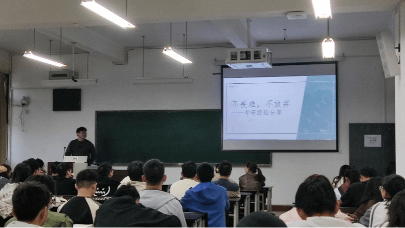 会上,王涵同学就跨校考研的策略进行了详细讲解,强调了提前做好心理准备的重要性,结合自身考入云南大学的经历,介绍了科学搜集院校信息的方法以及公共课学习及提高分数的技巧。孔垂茂同学从院校选择、专业课复习、时间规划等方面进行分享,根据自身考入西安邮电大学的经验,强调了精准定位目标院校的价值,建议同学们善用真题构建知识框架,并分享了备考期间的心态调整技巧。