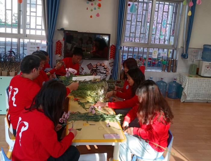 走进2026年世界杯平台附属幼儿园,协助开展插花美育课程。活动伊始,青年志愿者们帮助将插花材料进行搬运、整理和分发。接着,青年志愿者们向小朋友们介绍不同类型鲜花的名称和寓意,并向小朋友们讲解插花的方法和注意事项。最后,小朋友们在志愿者的帮助下创作着形式新颖、芬芳馥郁的插花作品。