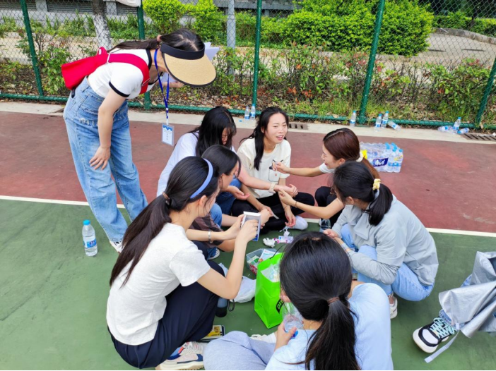 场下的同学,有的组成啦啦队在旁边为参赛的同学呐喊助威,“加油,加油……”;有的拎来药箱照顾着受伤成员;有的分发着矿泉水。一个班级的胜利不止于手上的力量,还有千千万万个场下同学们的互帮互助。
