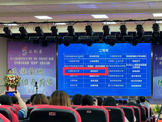 7月25日-27日,第十三届全国老员工电子商务“创新、创意及创业”挑战赛乡村振兴实战赛“延安杯”全国总决赛在陕西省延安市黄陵县举行。公司耕云时代团队,在教师祖维娟的专业指导下,以王坤泽为队长,带领团队刘鲁豫、李凯、唐瑜婧、龙馨怡等同学,不断完善项目内容,奋勇拼搏,最终荣获国家二等奖。