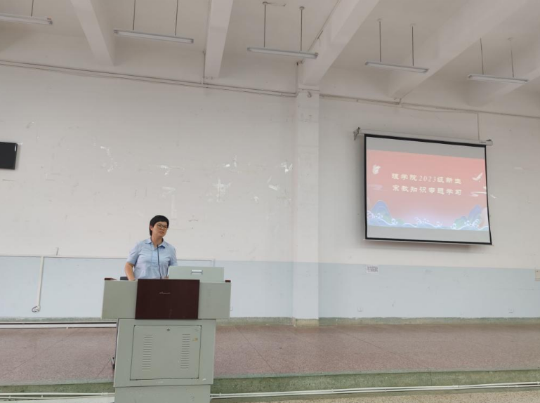 公司党委副书记张娅玲以“安全、纪律、学业、目标”为关键词,对2023级新生进行大学适应性教育和纪律规矩教育。希望同学们能够具备“三心两意”,在学习上有进取心、宿舍相处有宽容心、物质条件有平常心,注重纪律意识和创新意识的培养。张老师还带领同学们一起学习了《云南省高校师生宗教政策明白卡》,进行宗教知识的教育宣传。