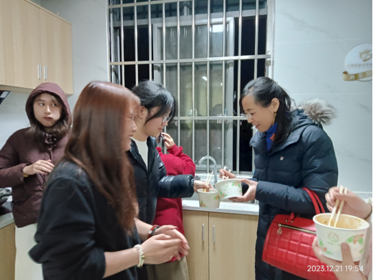 12月21日晚,2023级生物工程班在公司共享厨房组织包饺子活动,公司党委书记杜彬、班主任白志强以及班级全体同学参加此次活动。