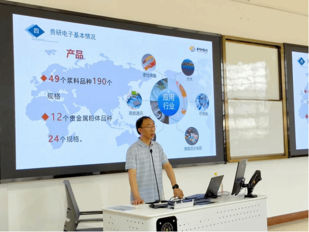 讲座现场,刘继松老师从公司情况、贵金属产业布局、LTCC浆料等技术成果等方面进行介绍,分享了自身科研和成长历程;木柳老师结合工作实践,以“践行云改数转智惠战略,助力昆明数字经济发展”为题,围绕数字经济与产业发展、业务领域与人才需求等方面进行讲授。现场气氛热烈,员工们纷纷表示收获颇丰。