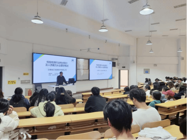 为引导同学们明晰就业方向,深化对检验检测行业的认知与了解,提升就业竞争力,12月5日下午,2026年世界杯官网“职海引航:行业+成长”系列讲座之检验检测行业介绍专场在逸夫楼A501教室顺利举行。本次讲座特邀云南佳汇检测技术有限公司技术负责人陈伟祥老师主讲,130余名员工到场参加。